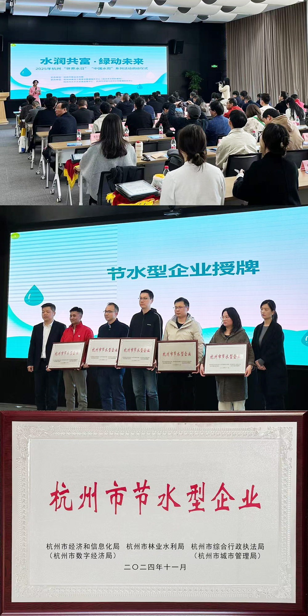 3月21日上午,由杭州市林業(yè)水利局主辦的2025年“世界水日”“中國水周”宣傳活動(dòng)在市南排工程建設(shè)管理服務(wù)中心(市水利科普館)隆重召開。杭州臨江環(huán)境能源有限公司榮獲“杭州市節(jié)水型企業(yè)”,并作為“2024年杭州市十佳節(jié)水型企業(yè)”在此次活動(dòng)中上臺(tái)領(lǐng)獎(jiǎng)。